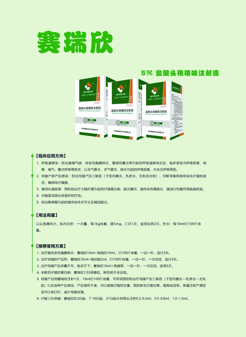 赛瑞欣//100ml:5g//10ml:1g/头孢噻呋混悬注射液